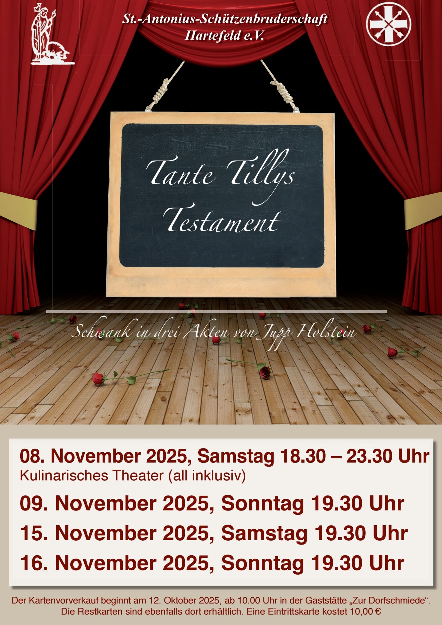 Die St. Antonius Schützenbruderschaft Hartefeld feierte am vergangenen Wochenende ein unvergessliches Schützenfest zu Ehren von König Lucas van Stephoudt und seiner Königin Michelle sowie der Ministerpaare Simon und Julia Schmaelen und Fabian Clancett mit Fabienne Barthel. Die Veranstaltung zog zahlreiche Gäste aus Hartefeld, Vernum, Poelyck und darüber hinaus an und vereinte Tradition, Gemeinschaft und festliche Freude auf eindrucksvolle Weise.