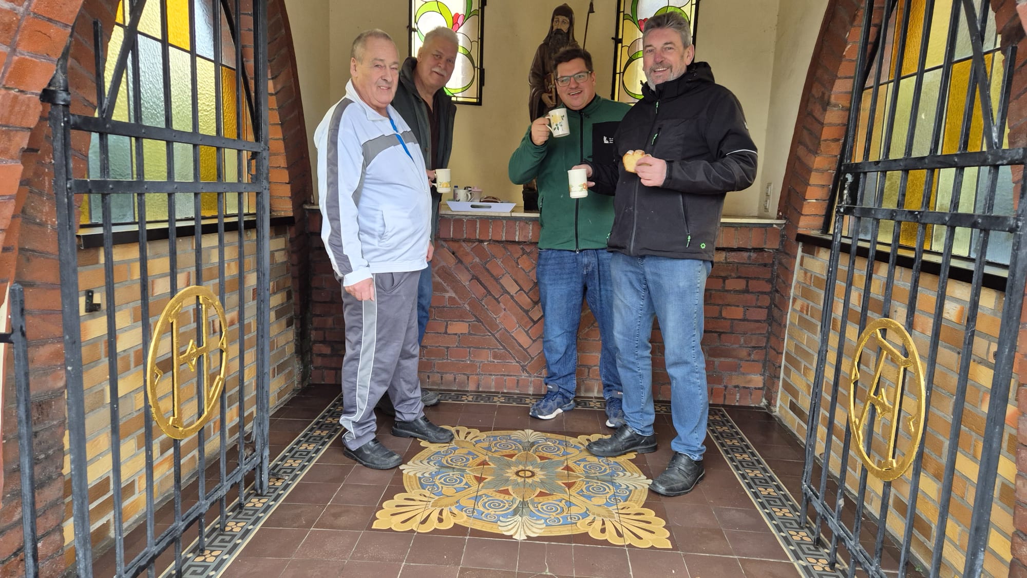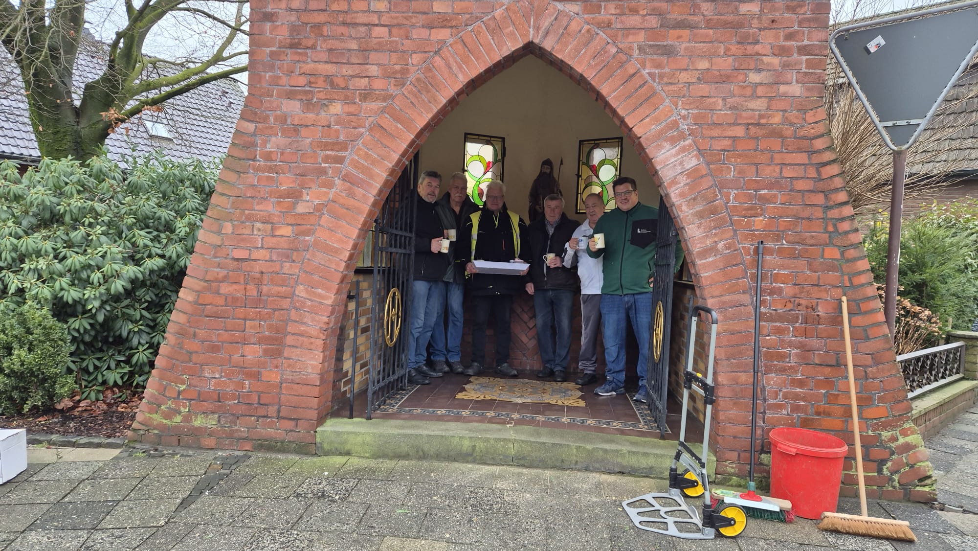 Wie jedes Jahr hatte unser Krippenmeister Niklas zum Abbau der Krippe eingeladen. Natürlich waren alle pünktlich vor Ort, und der Abbau verlief ohne größere Komplikationen. Eine besondere Überraschung erlebten die Helfer, als plötzlich – die Arbeit war bereits erledigt – ein Nachbar mit einem großen Tablett auftauchte. Darauf standen mehrere Tassen Kaffee und Kuchen. Eine, wie alle meinten, sehr schöne Geste von Peter van Dick.